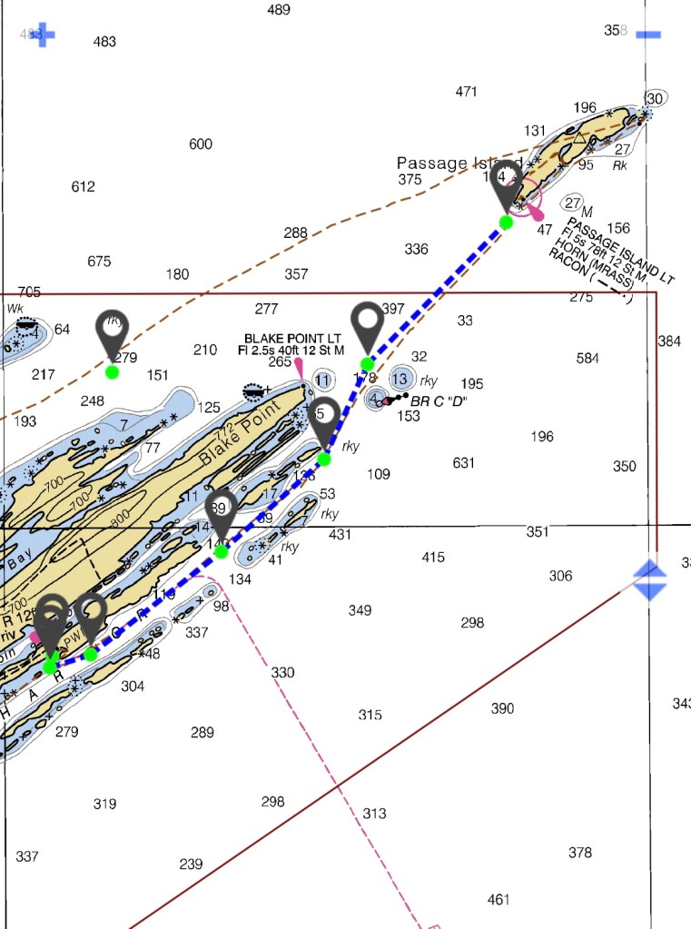 Back on the boat we continued to circle the Island, proceeding with great caution as the area is rife with shallows and rocks that are only noted with a vague * on the chart. With two lookouts posted on the bow to point out perils, we managed to squiggle our way into a little inlet that surprisingly had a boathouse and nice dock. Behind the boathouse was a well worn path leading into the woods. It passed a wooden outhouse that was obviously somewhat serviced and after taking advantage of it we continued to follow the trail. We hadn’t a clue we’d be hiking, so some were still in their life jackets and hats and coats. The air was toasty warm inland and we were soon shedding layers. It was a beautiful hike with gullies and cliffs. We kept expecting to reach a pirates lair, or at the very least an abandoned mine but after nearly reaching the lighthouse again we gave up and went back. We could see by old steel tracks that there had to have been something like a mine in the area and after rooting around noticed that the tracks went almost directly to the outhouse. After concluding that perhaps the outhouse hole was an abandoned mine shaft we returned to the boat mollified that our adventure had after all yielded something.