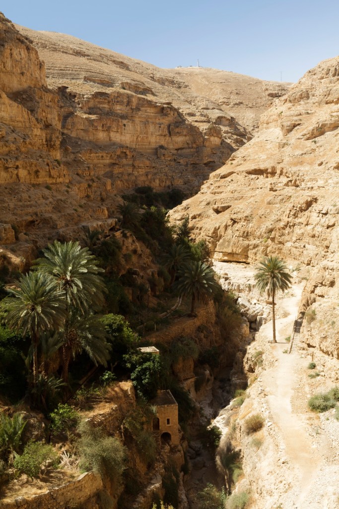 Wadi Qelt (the biblical Jericho Road) is Heath and my favorite hike. You start by descending a steep road into the canyon by the stunning St Georges Monastery. The harsh desert gives way to beautiful greenery, an ancient aqueduct runs along the canyon, and a slightly less ancient aqueduct that still carries water is flowing a little lower. Massive trees give shelter from the sun, and the wildflowers once again outdo themselves. At the bottom, a river flows and tumbles over and around rocks, rushes through little canyons and makes your heart sing with it.