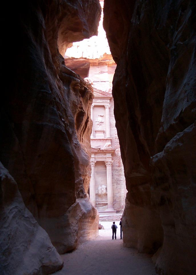 The morning was foggy and cold and we were a little worried Petra would be half hidden in the clouds. We needn’t have worried, cause the clouds lifted as we reached the gate, and after awhile the sun even peeked out. This caused a rousing cheer among 400 or so of the other folks waiting to enter the park. Our group made their way rapidly to a coffee shop and fortified themselves with espresso’s and hot chocolate while Heath sorted out the logistics and ticket buying.