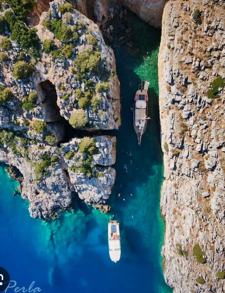 Other brave souls were scaling the rocky cliff and leaping off into the water, progressively getting higher and higher until it was at least 35ft. The rocks were sharp, so legs were running blood and smiles were huge. It was an epic afternoon, made even better by the iced coffee and heavenly pastry that Avril suddenly produced. Salty and satisfied, we untied and headed for the town of Astypalea.