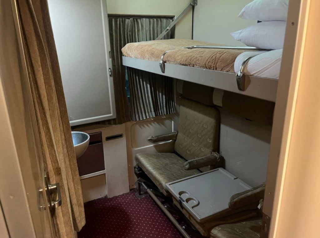 The comforting clunking of the rails and the gentle swaying of the train made sleep easy. At least for me. We were in the last car, so the whistle was a distant noise whenever we crossed a road. Occasionally other trains would pass us, with a loud rushing noise, but aside from that it was just us and the lingering smell of cigarettes from years past. Our group had five double cabins, ancient brown and beige rooms that were clean, but well worn. I could totally imagine Agatha Christie riding the same train back in the day when she wrote Death on the Nile.