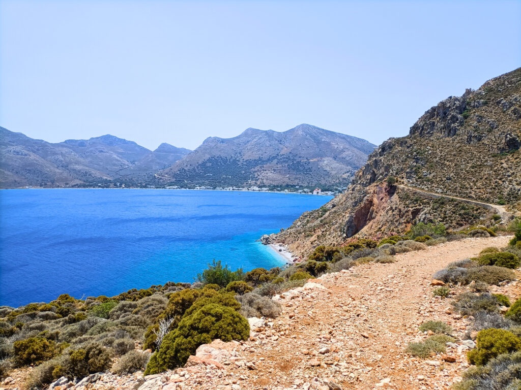 The journey back to Kos was 9 hours, so we decided to break it up with a stop at Tilos. What do you know, I fell in love with this Island too! How will I ever decide where I will eventually live? It truly is stunning. Off the regular tourist route, Tilos is pretty much an untouched gem. We took a 4.5 mile hike along the coast to a secluded beach. Honestly, probably one of the most beautiful hikes I have ever been on. The trail wound up over cliff tops and hills and always the Sea was spread out below. Goats jumped on the rocks, little purple flowers were beginning to burst into bloom and shrubs with small white flowers scented the air with a delightful smell. The first part of the trail was on a small road that was lined with blooming trees, bougainvillea, lantana’s and palms. They sometimes made an arch overhead and you felt you were walking in paradise. It really can’t be described. You can come visit me there and see it with your own eyes. The town even had a bakery that produced delicious bugatsa, a Greek pastry that I would almost sell my birthright for.