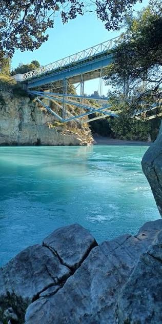Zach’s live in Methven, about an hour out of Christchurch towards the mountains. The drive there through the Canterbury countryside was pretty amazing. It’s flat and full of farms. Tractors share the road. Tall trimmed box hedges surrounded most of the fields, literally thousands of sheep grazed the lush grass, horses abounded and even something that looked like a cross between a llama and a giraffe, which we christened a “laugh”. We pulled off at the Rakaia Gorge and spent a little time stretching our legs, drinking in the beautiful scenery and listening to strange bird songs. The water was a strange almost brilliant milky aqua color.