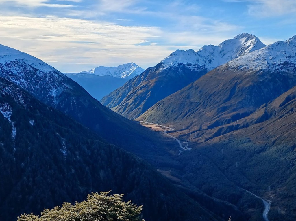 To offset our perfectly delicious relaxation yesterday, we decided on a marathon day today. We were up and out before the sun, which in this case was about 6:00. The clouds and fog of yesterday had disappeared out to sea and the day was gloriously clear. The mountains had a fresh blanket of snow and positively glowed in the first light of dawn. Our destination was the West Coast and a sprinkling of what it has to offer. The drive over Arthur’s Pass to get there was three hours of rugged mountains, rivers, waterfalls, and single lane bridges.