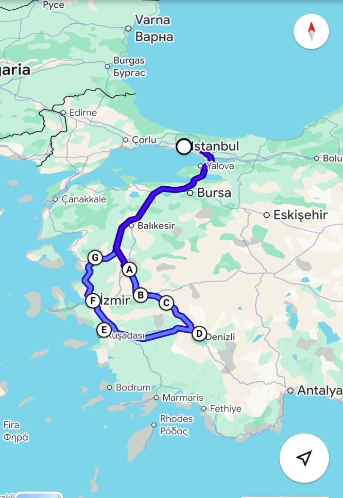 Heath had mapped all seven churches out in a two day itinerary, and as you can see they’re really not spread over a huge region. Total driving time was a little over 16 hours.