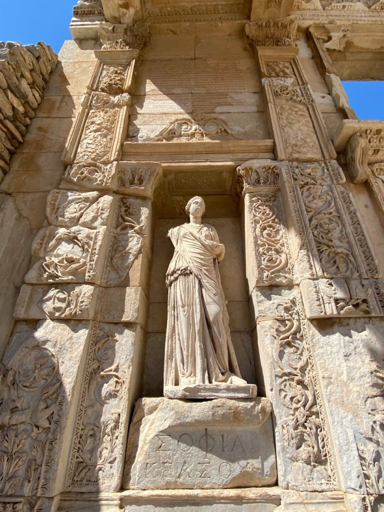 There are lots of ruins to explore, so we spent time just ambling around. Ephesus is also home to the Library of Celcus that was built in 110-120 AD. Some restoration has been done and it’s pretty impressive. The detail and work these builders went to is amazing.