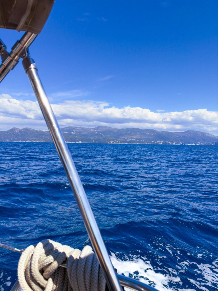 We made fantastic time, and Corfu arrived a few hours before we had expected. Kinda forgot we’d be able to go that much faster with a longer boat. Nice! The first marina on our radar was under construction and no crafts were allowed. We checked a second one, but the depths were touch and go and all the deep water spots seemed full of long term boats. Quite a few had people living on them, and one lady had hung her boats toilet seat on the marina’s red entry beacon and was busy spray painting it. Why not? Doesn’t kill the pristine look of the place at all. The third time was a charm, and we docked at NAOK Yacht Club. Pictures on Google Maps are hilariously deceptive. It’s probably a yacht club in season, but that week it was simply a chipped concrete dock with some rundown buildings nearby, some locked toilets that reeked to high heavens even walking by, and a dingy gym that apparently opened occasionally. Old Greek men drove their motorbikes and even cars onto the pier to fish or eat lunch or just gaze over the water. Altogether an ideal spot to feel real Greece. And free! Always a bonus for us.