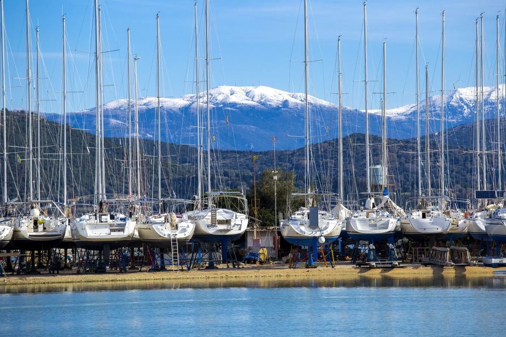 Lefkada D Marina was our charter base. We arrived Saturday afternoon at this huge, dead marina. Almost no one was around, and as we wound our way around all the dry docked boats looking for the office it was almost creepy. I had expected a bustling port with markets, restaurants and hopefully laundry services. Nope. All we could see were acres of sailboats and some very dead looking businesses. Eventually we found the gal we needed, signed our papers and then headed off to look for Pura Vida and the one lone guy who would introduce her to us. He was nice, lone guy, but also didn’t know hugely much about the boat, and didn’t seem to have a very great amount of local knowledge either. We wanted to exit the port via a waterway that had a swing bridge on it. Did he know the bridge opening times? No. Nor did he know if it even opened at all! This was sort of disturbing, as it was an extra half days sailing to get to our destination if we couldn’t go through. Indeed, it would mean a totally revamped sail plan. He also was quite sure that at that time of evening all supermarkets would be closed and they would all be closed the next day cause it was Sunday and, helpless shrug. Well, we would see it to believe it.