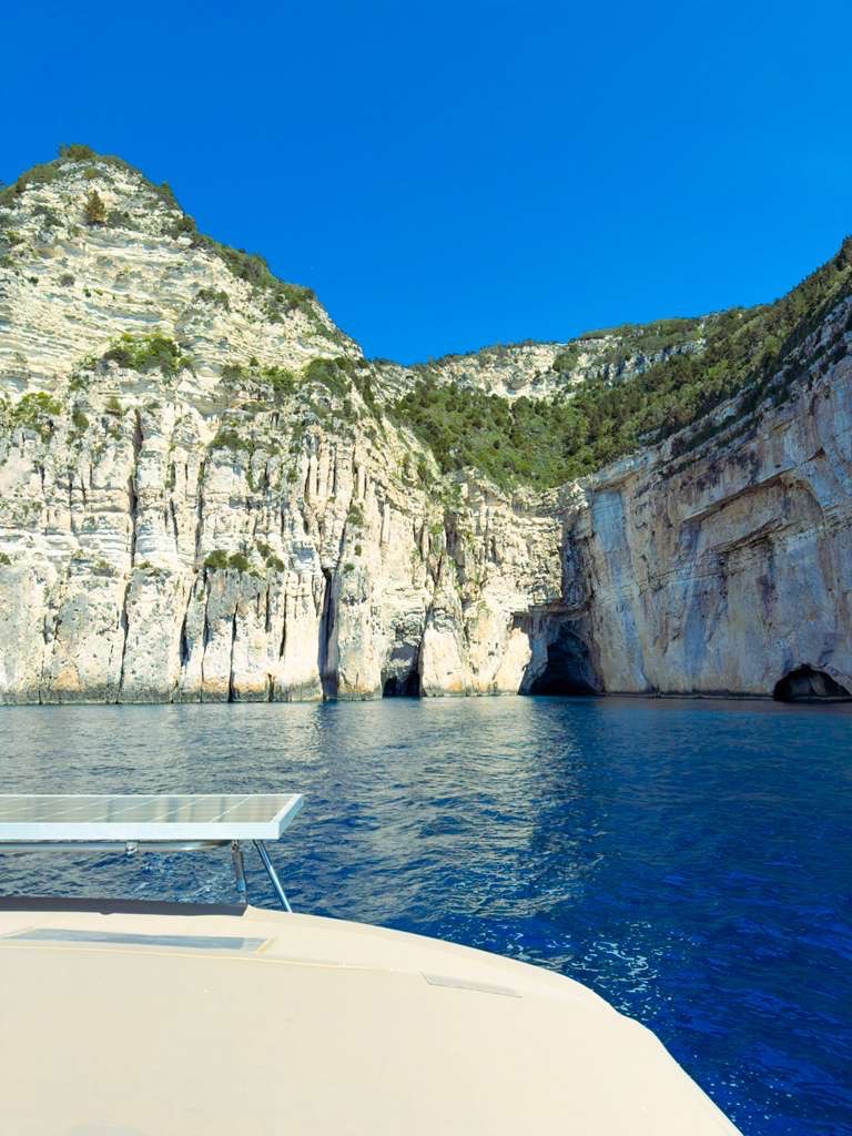 Long day planned for Tuesday as we really needed to get to Kefalonia Island for night to avoid the worst of the winds and waves. Finding good anchorage’s in the Ionians has proved to be a bit of a challenge. The bottom is not as good for holding, lots of steep drop off and rock instead of sand, and the winds and swells are just plain against us this go around. Is it luck of the draw or just Ionian sailing? Regardless, we sailed off in high spirits and pointed our bow to Paxos and Anti Paxos, two little islands just south of Corfu.